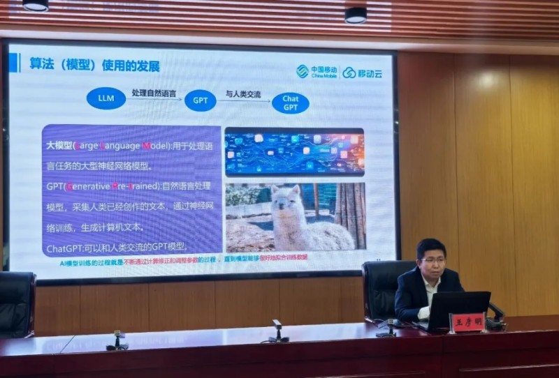 云數(shù)智科技寧夏分公司負責人王彥明分享人工智能在現(xiàn)代辦公中的應用前景和方法。