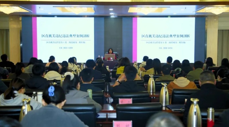 區(qū)直機關紀檢監(jiān)察工委陳紅梅剖析區(qū)直機關違紀違法典型案例,開展警示教育。
