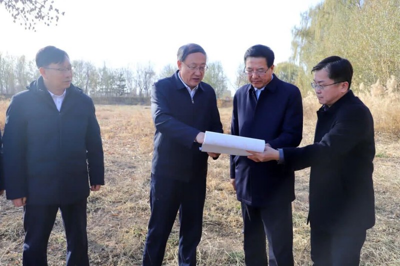 李邑飛在寧夏大學中衛校區,實地察看建設用地供給情況。寧夏日報記者 黨碩 中衛市新聞傳媒中心記者 楊雪/圖