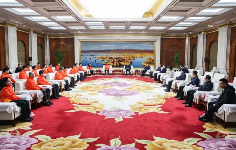 11月22日,李邑飛、張雨浦在銀川會見第十五屆全運會寧夏體育代表團和全國體育系統(tǒng)先進集體、群眾體育先進個人代表,并與大家座談交流。